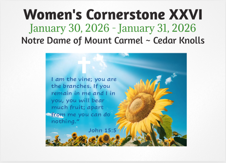What is Cornerstone? Women’s Cornerstone is a retreat experience that begins Friday evening, 6:00 - 9:30 pm, continues on Saturday, starting at 7:00 am, and concludes with the 5:00 pm Vigil Mass Saturday evening (no overnight stay at the church). Cornerstone allows participants (25 years and older) to find gratitude in their lives. As a result, participants—candidates—revitalize and deepen their spiritual well-being. While prayer and quiet reflection are components of the weekend, so, too, are faith-sharing and fellowship. Faith-sharing reveals where Christ, the Cornerstone, has played a significant role in candidates’ journeys. Candidates consider what has happened, what is happening, and what will happen in their lives. Fellowship leads to spiritual mentorship, which lasts long after the retreat has ended.